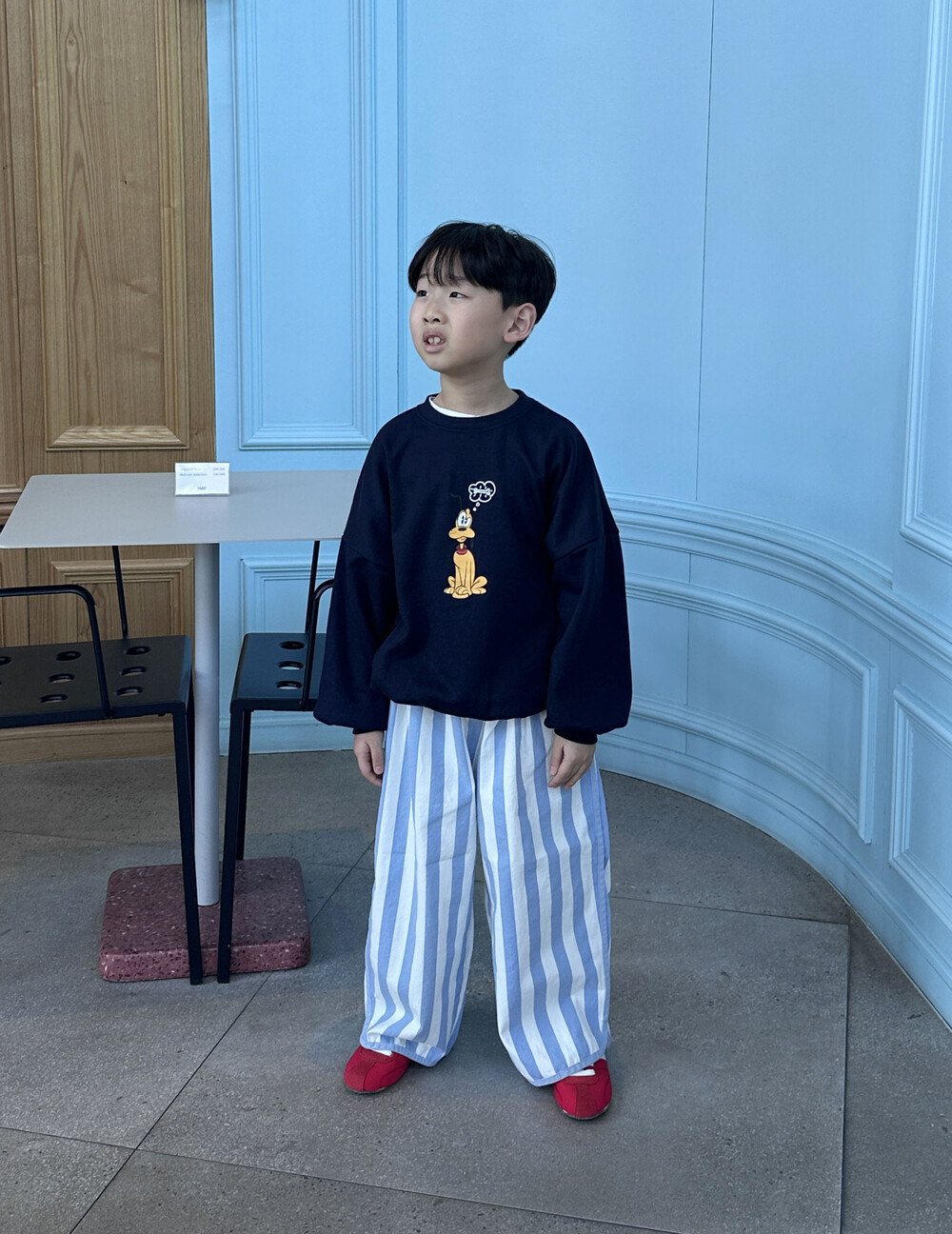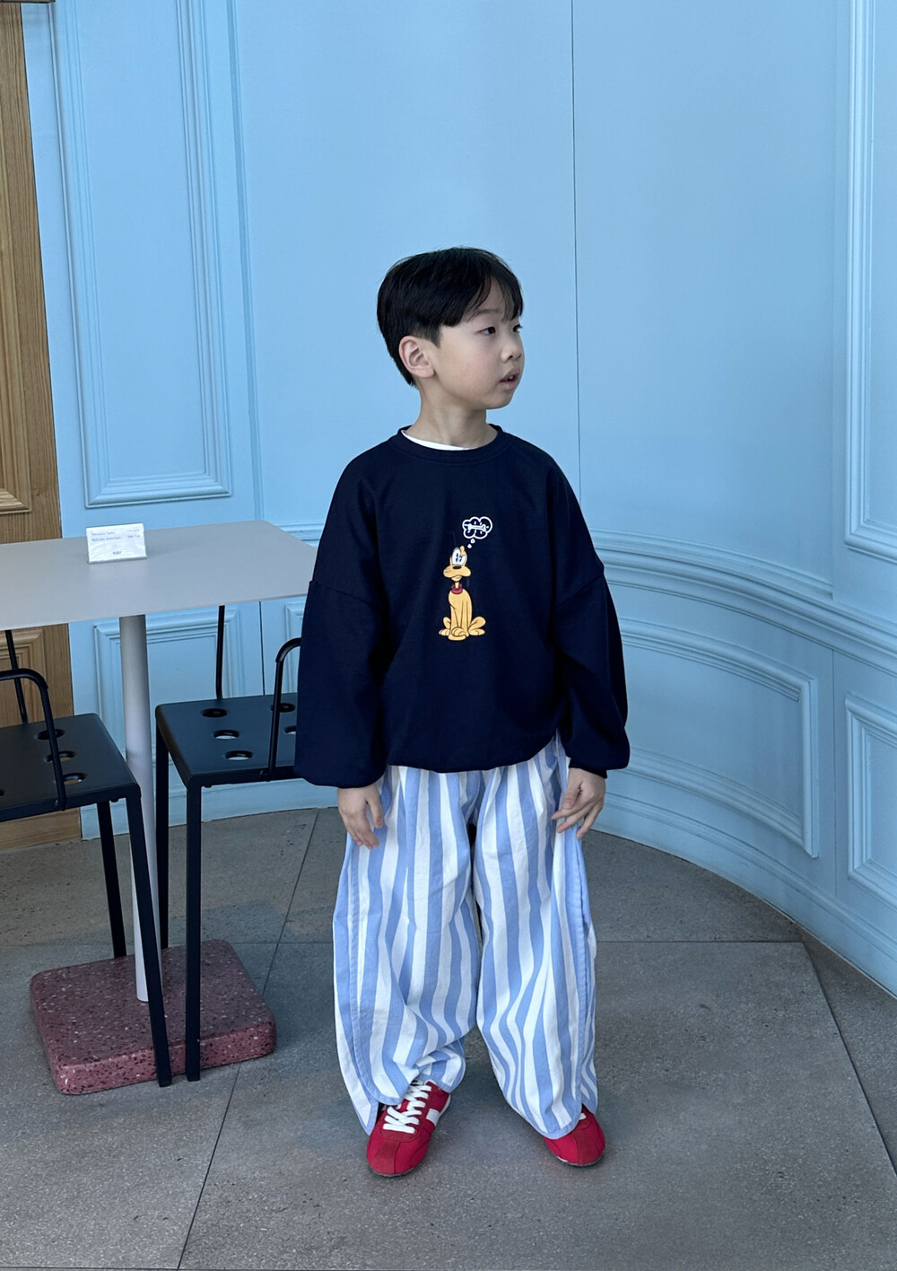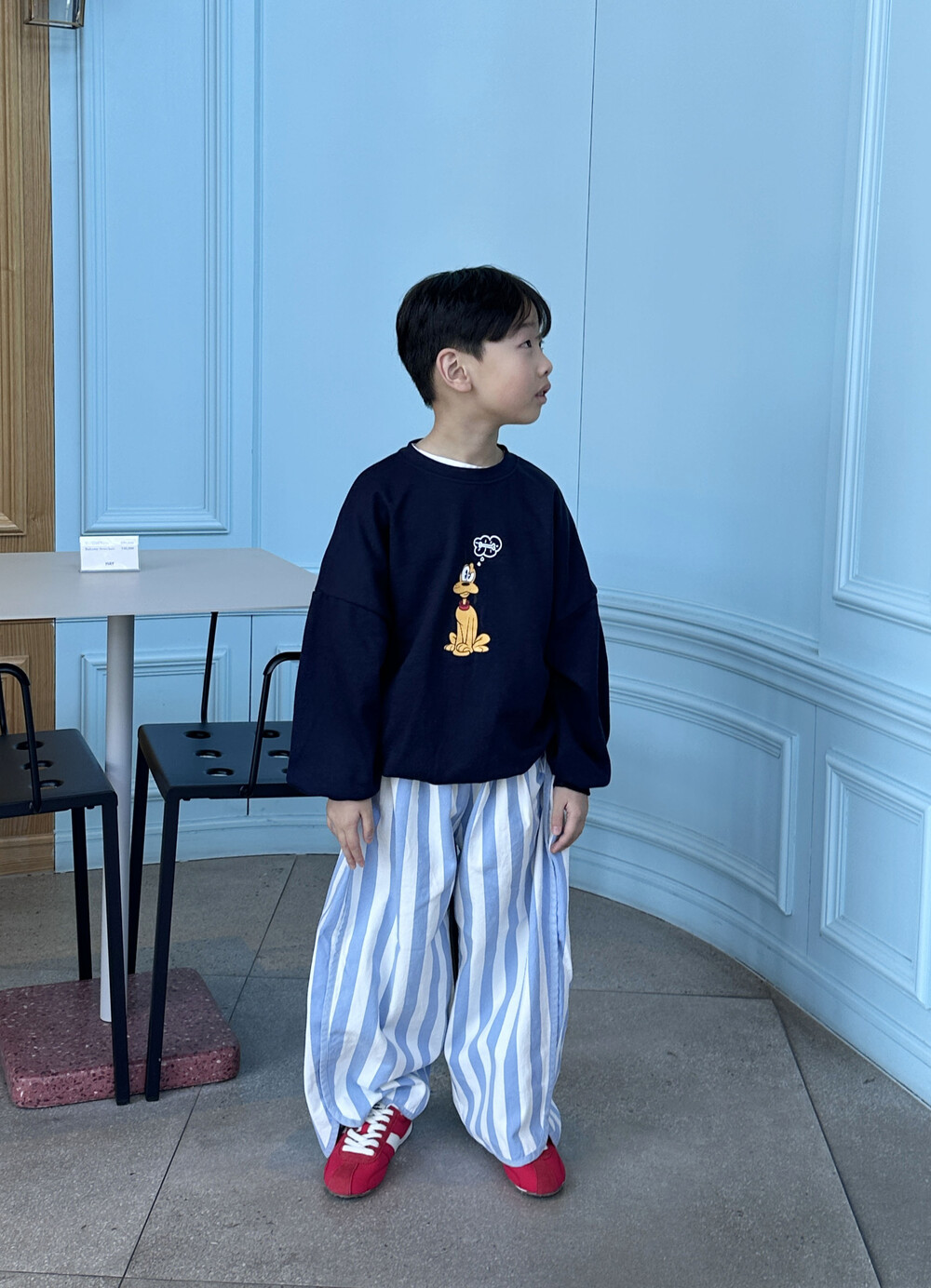 귀여운 플루토 나염이 작게 들어간 맨투맨이에요!