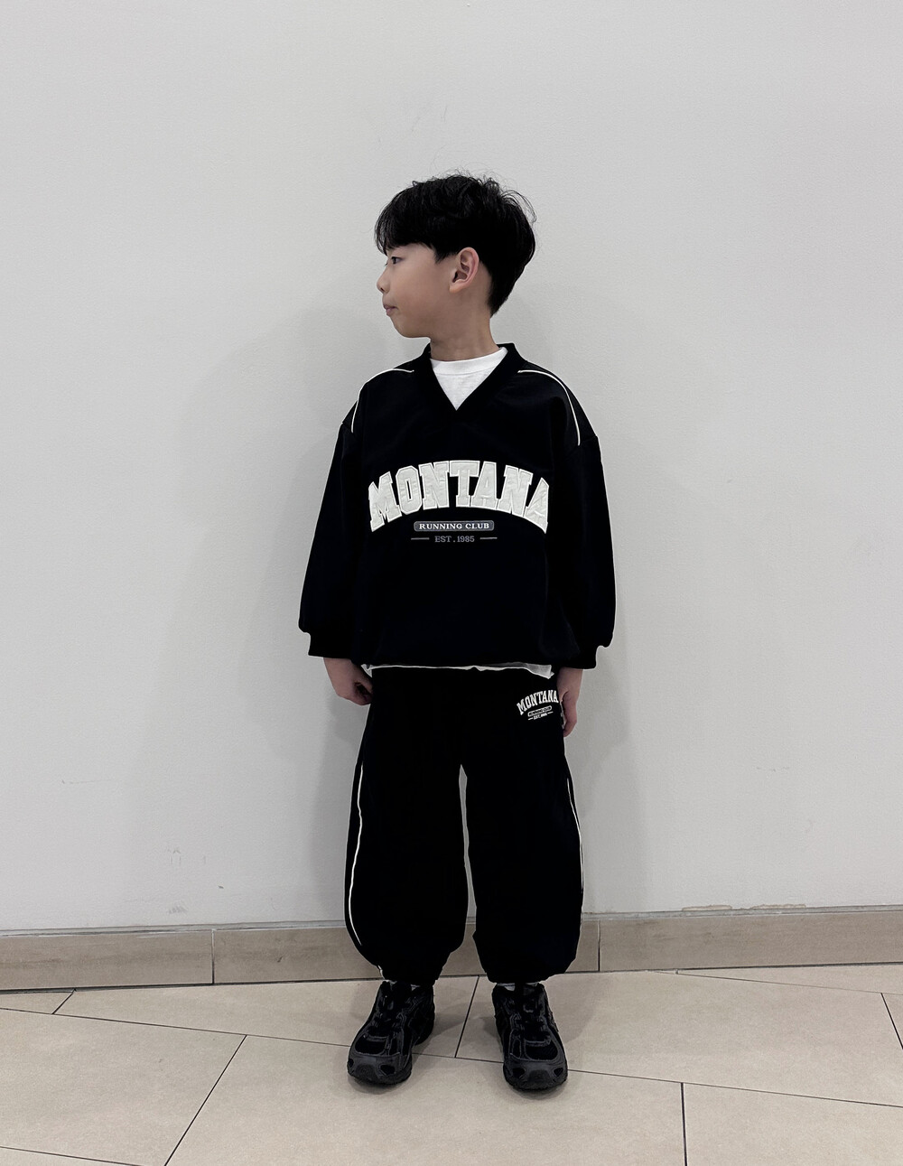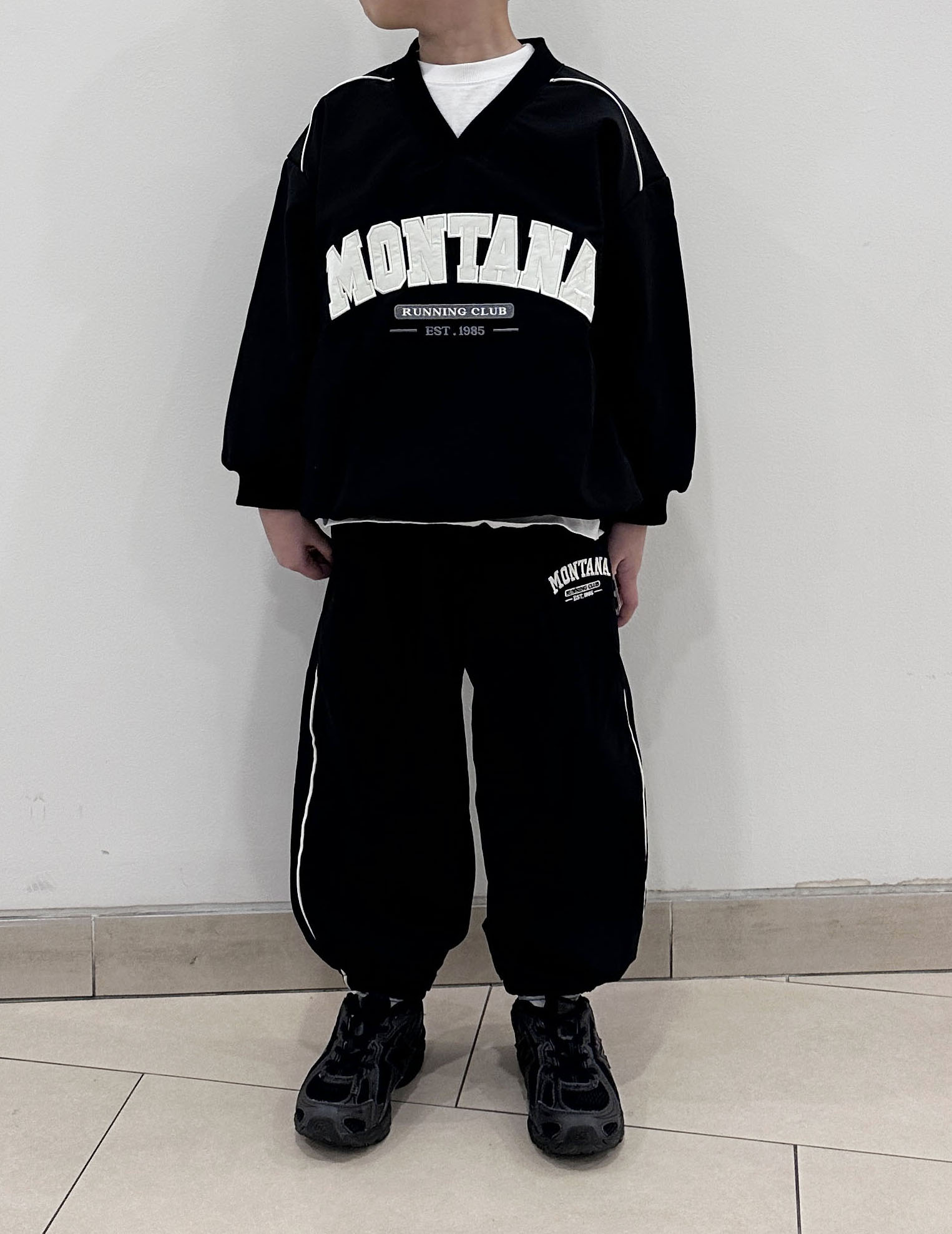 스포티한 무드의 맨투맨으로