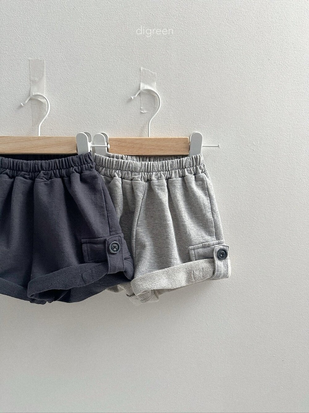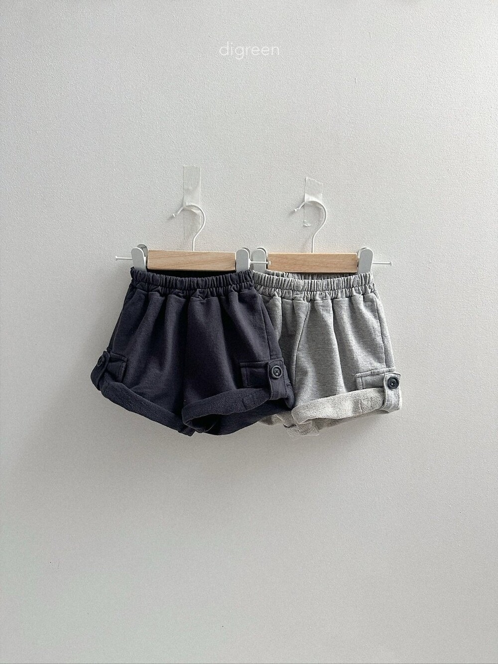 밑단을 살짝 접어 단추로 고정하면 숏팬츠처럼 변신~!!