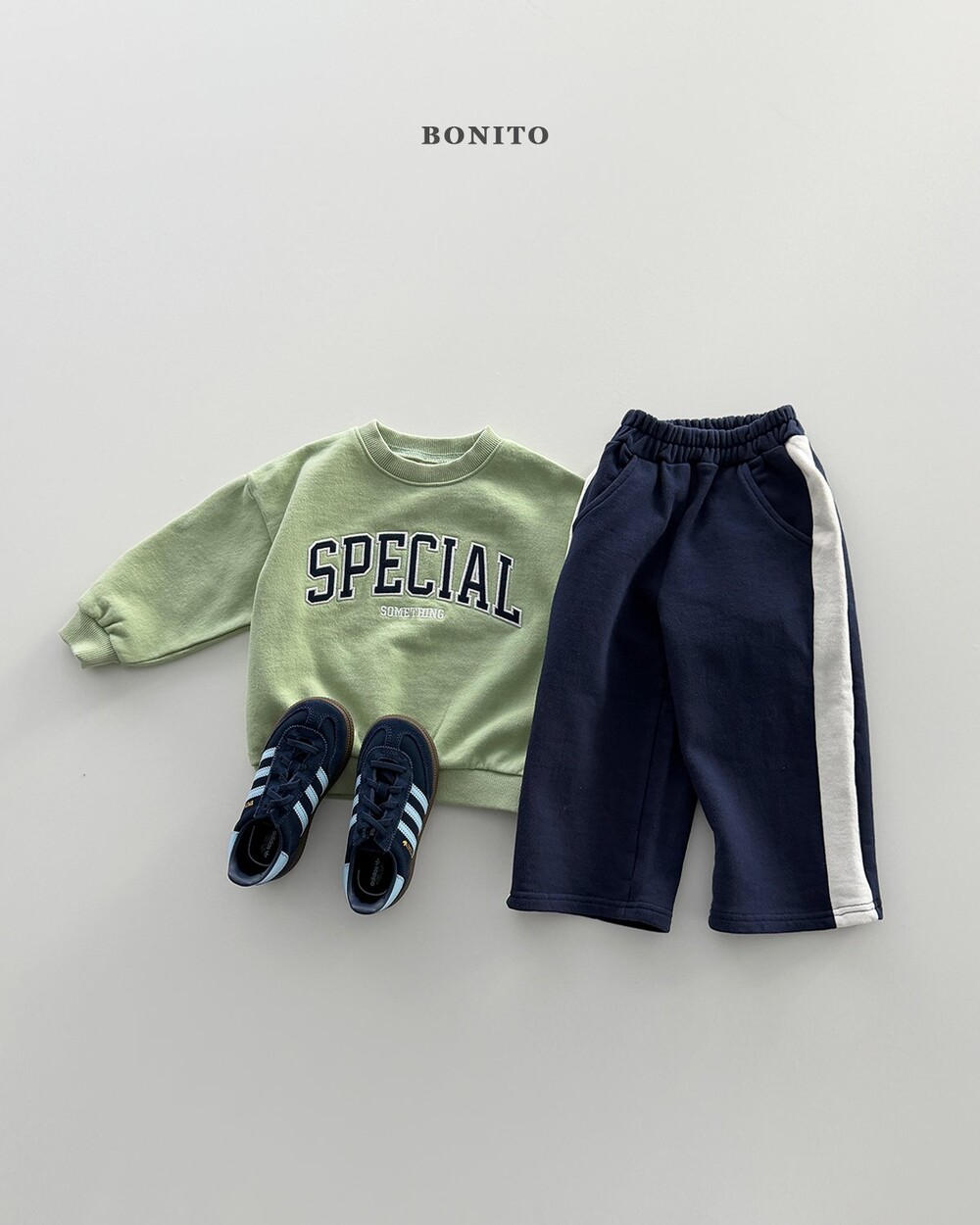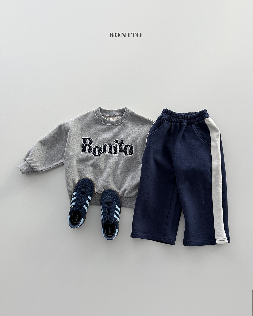 스포티한 무드가 돋보이는 사이드 배색 팬츠예요.