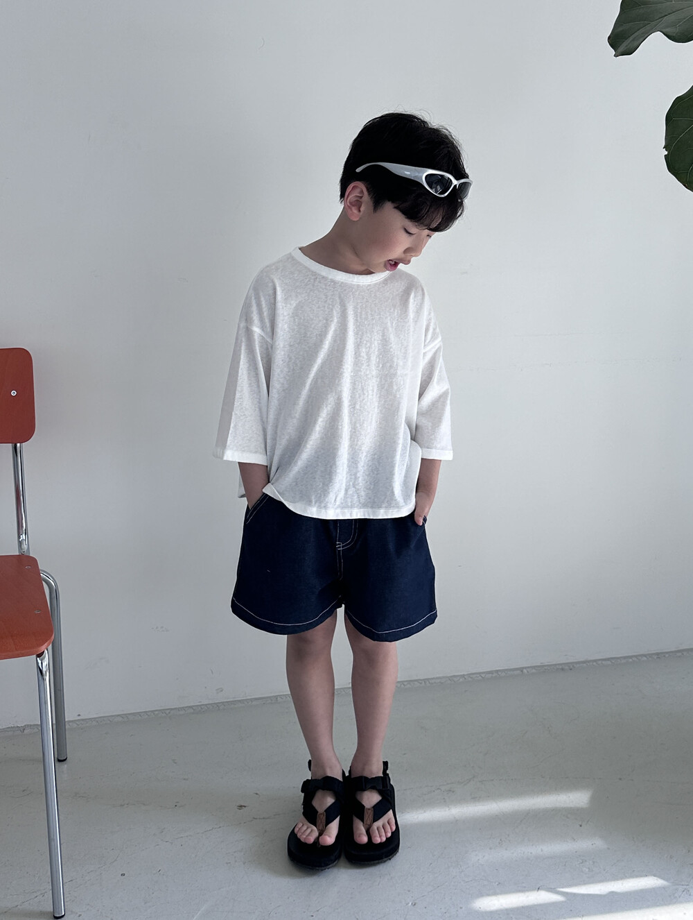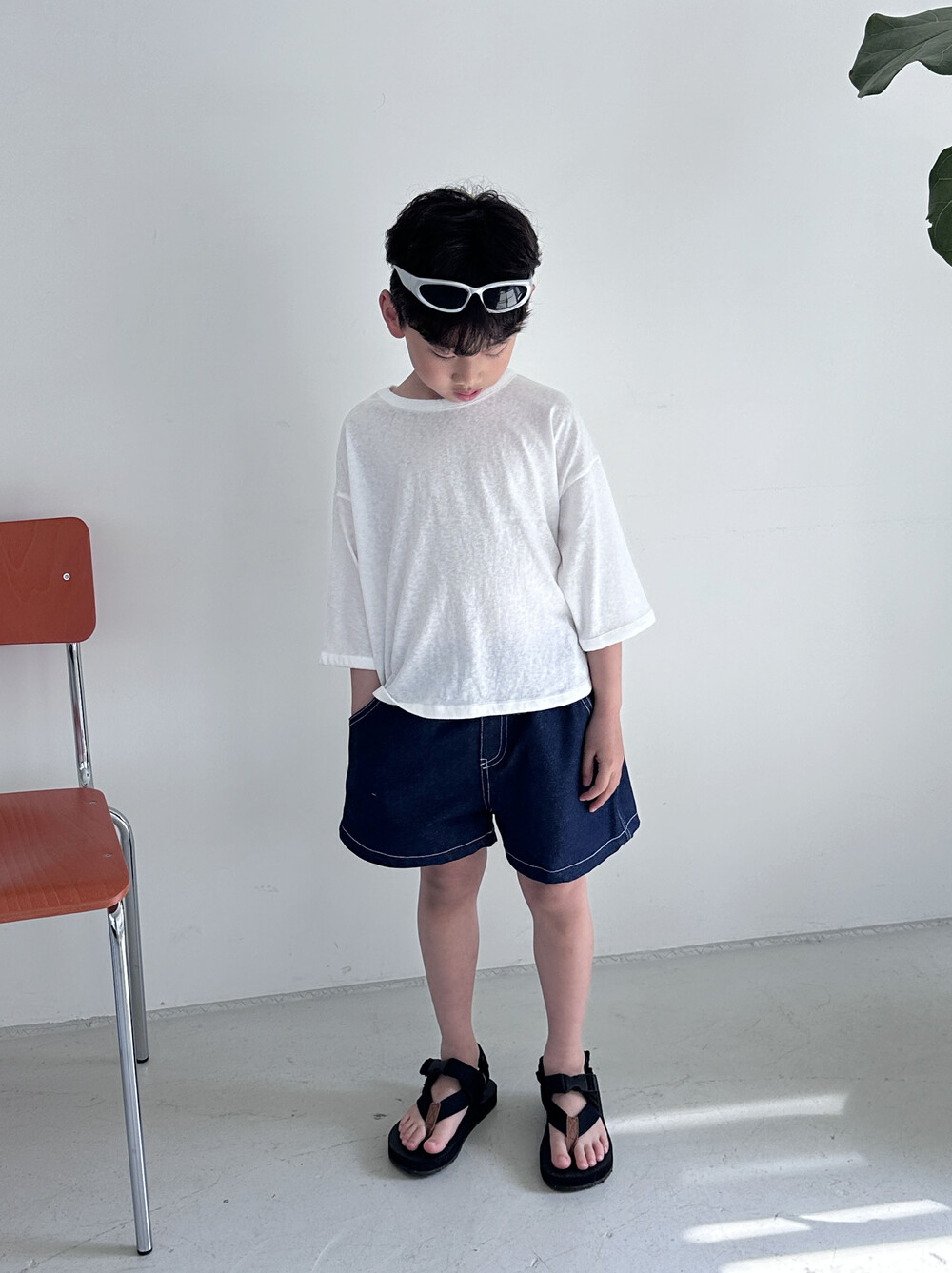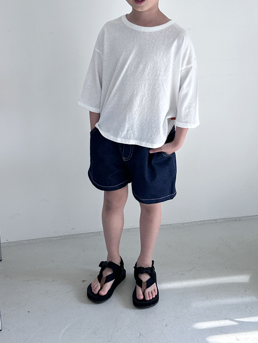 논페이드 데님으로 제작 된 반바지에요!