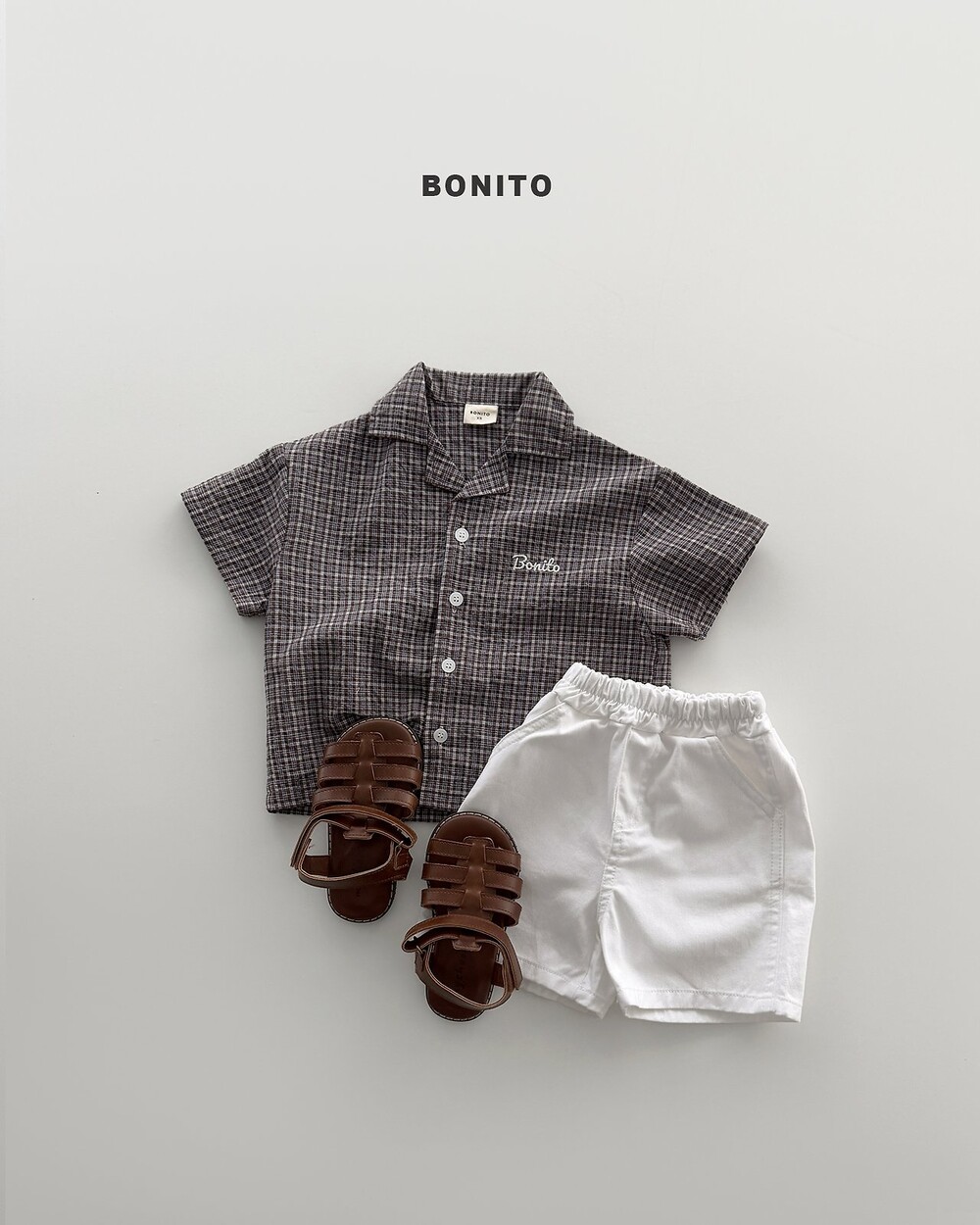 은은한 체크 패턴과 자수 포인트로