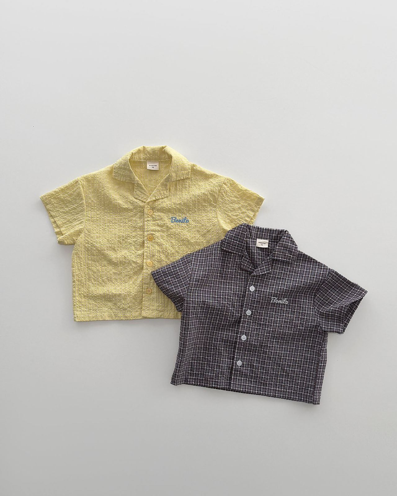 산뜻한 컬러감이 매력적인 썸머 무드의 반팔 셔츠에요.