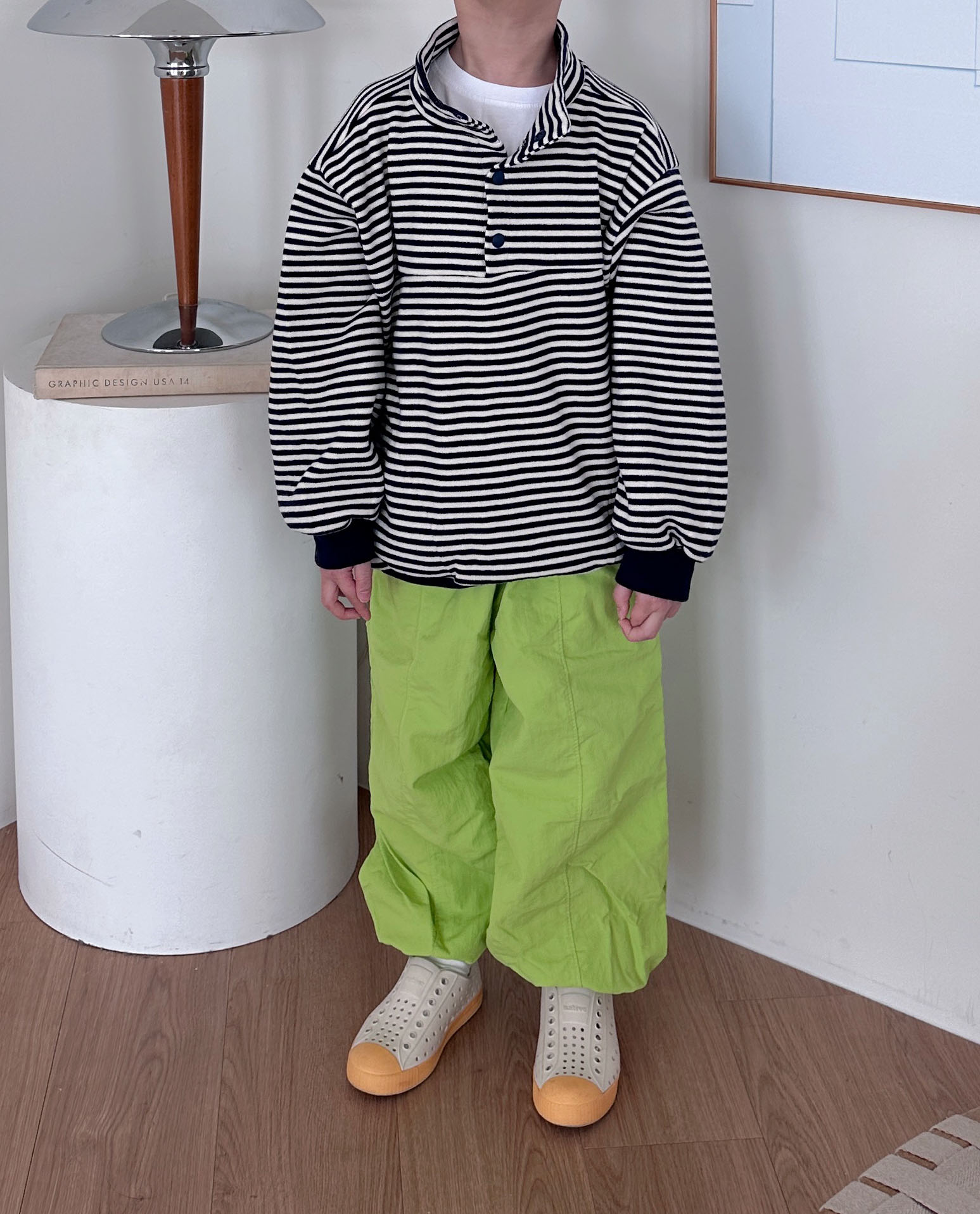 클래식한 느낌의 스트라이프 아노락 맨투맨입니다.