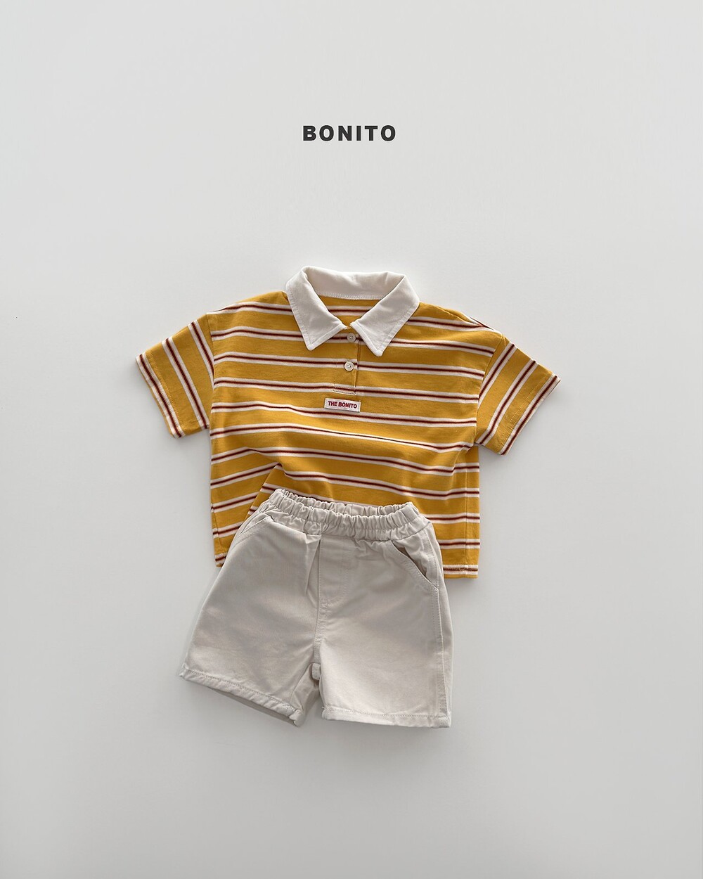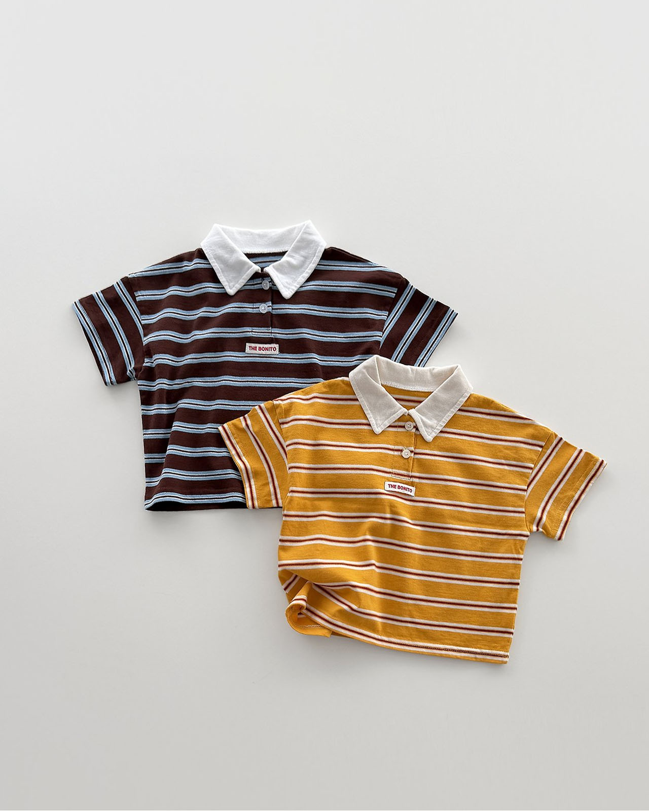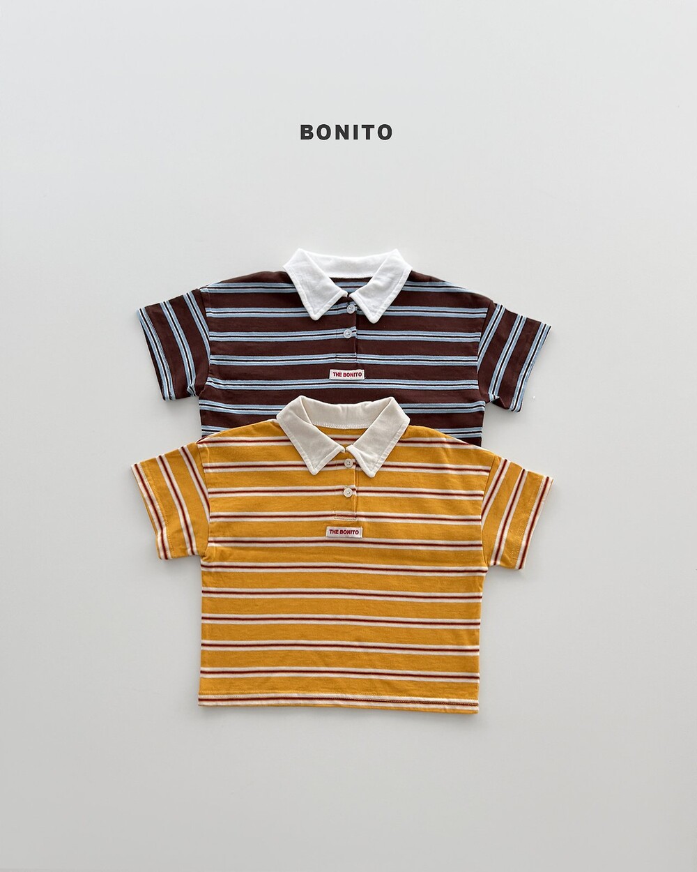 경쾌한 스트라이프 패턴과 카라 디테일로