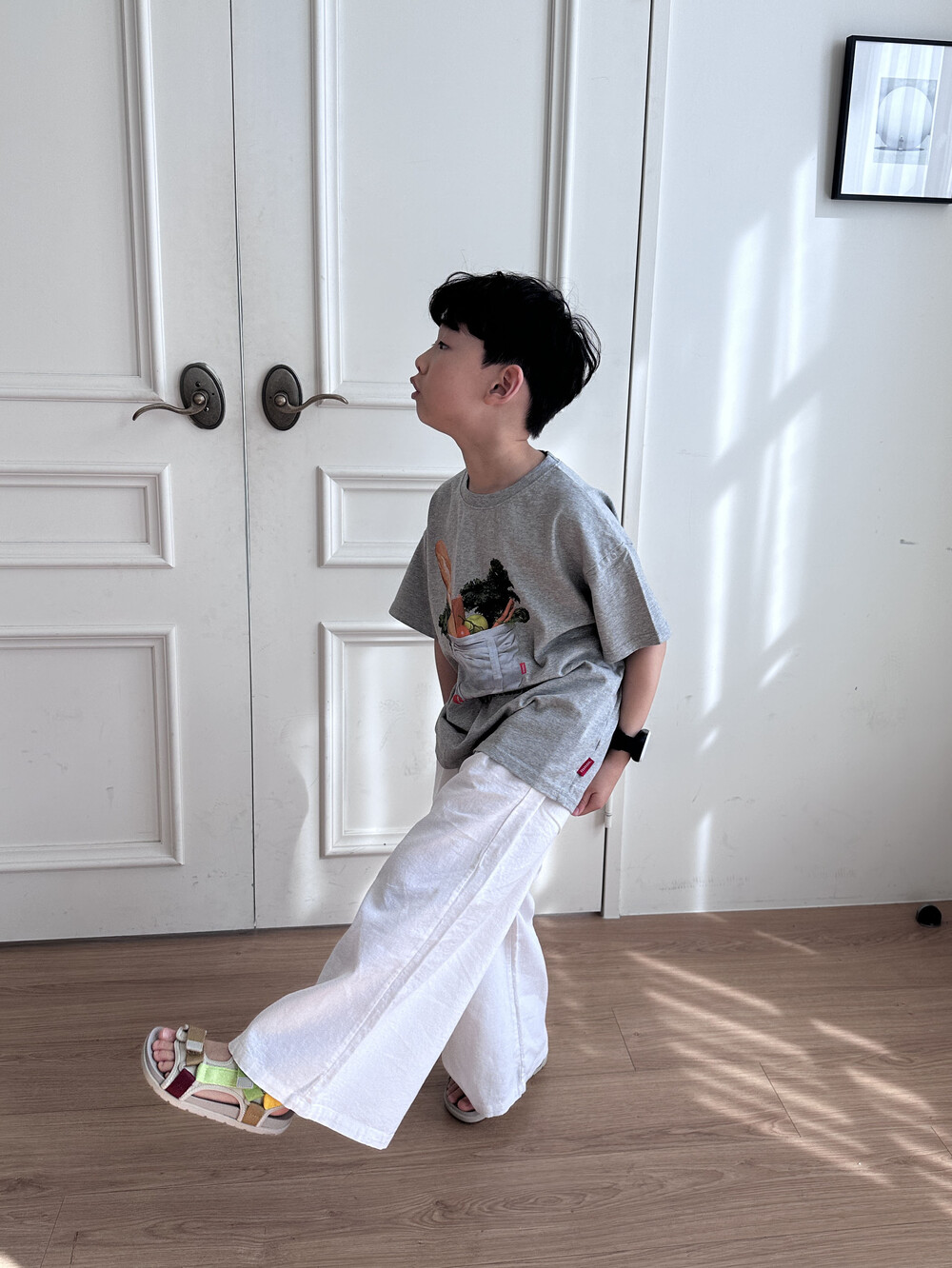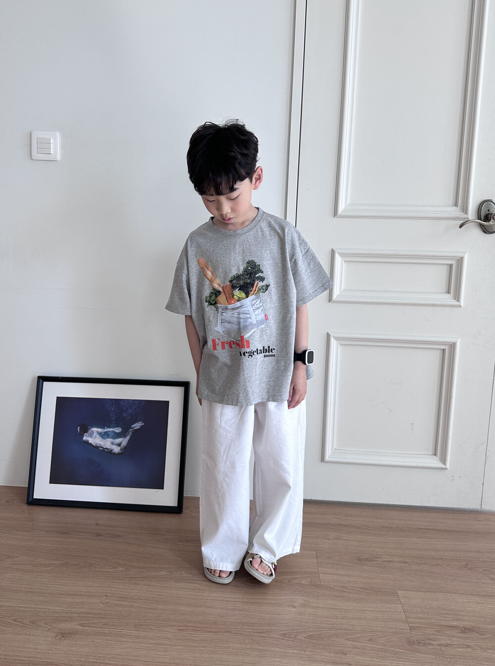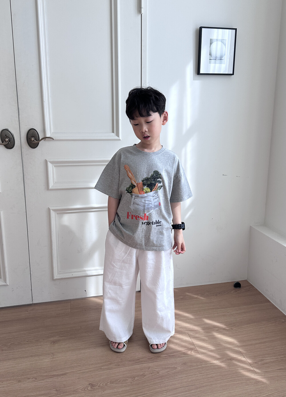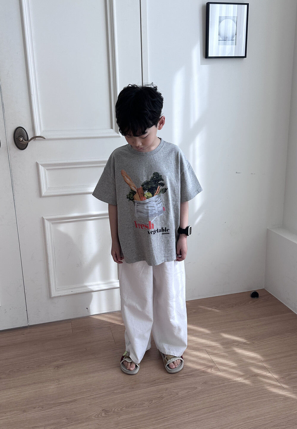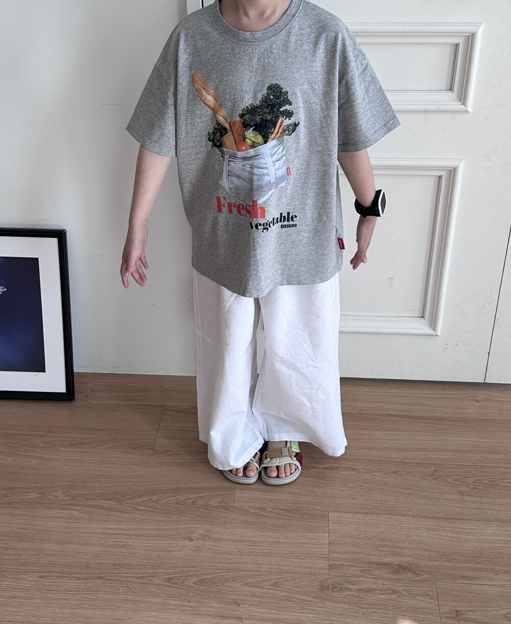 어떤 하의와도 찰떡매치가 되는 야채타임 티 입니다.