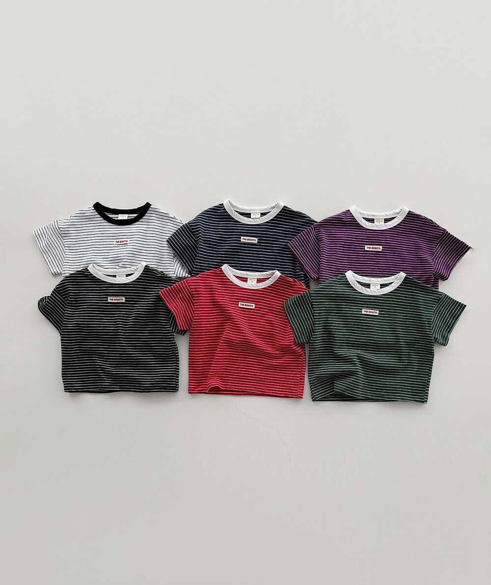 잔잔한 스트라이프 패턴과 배색 랍빠 디테일로