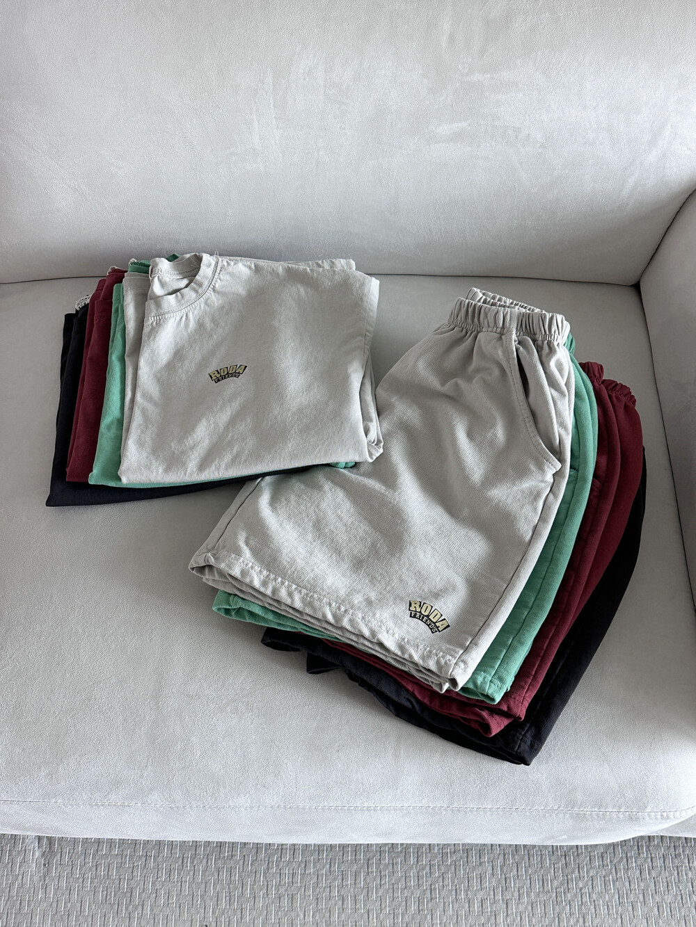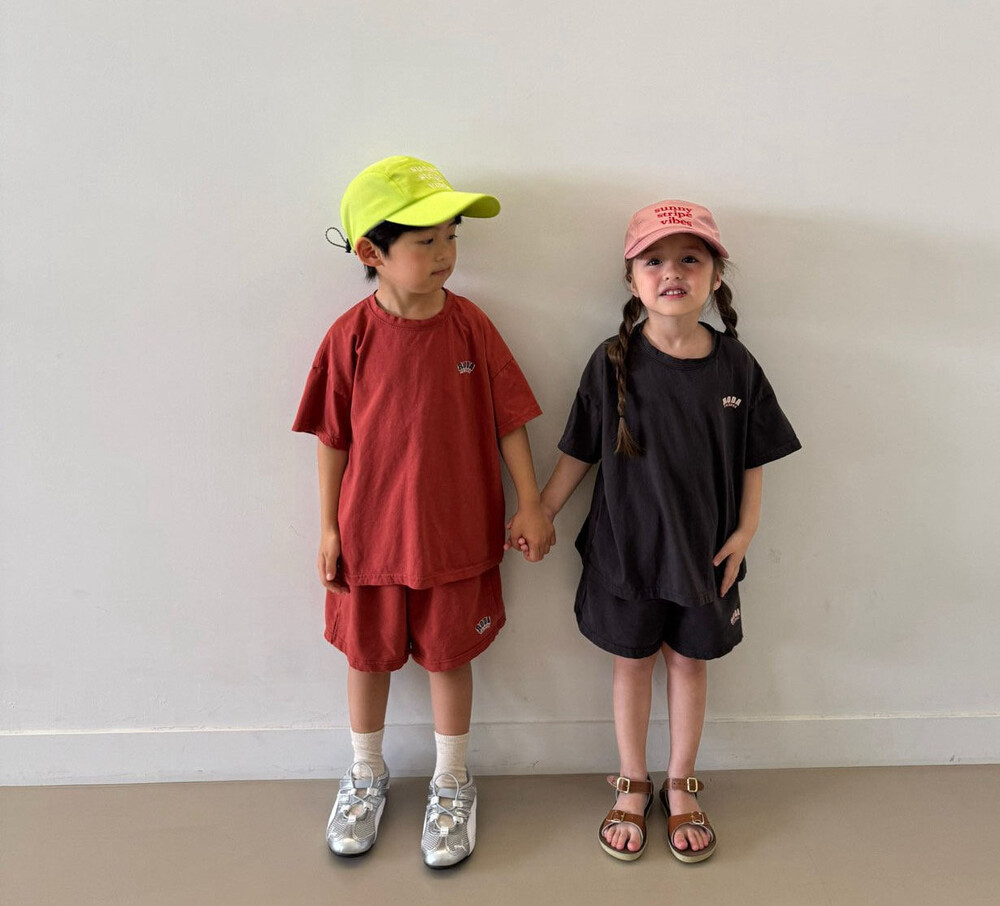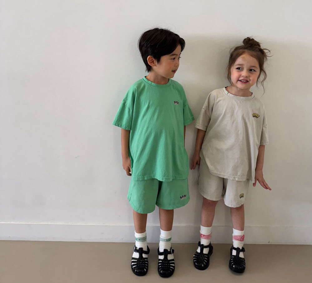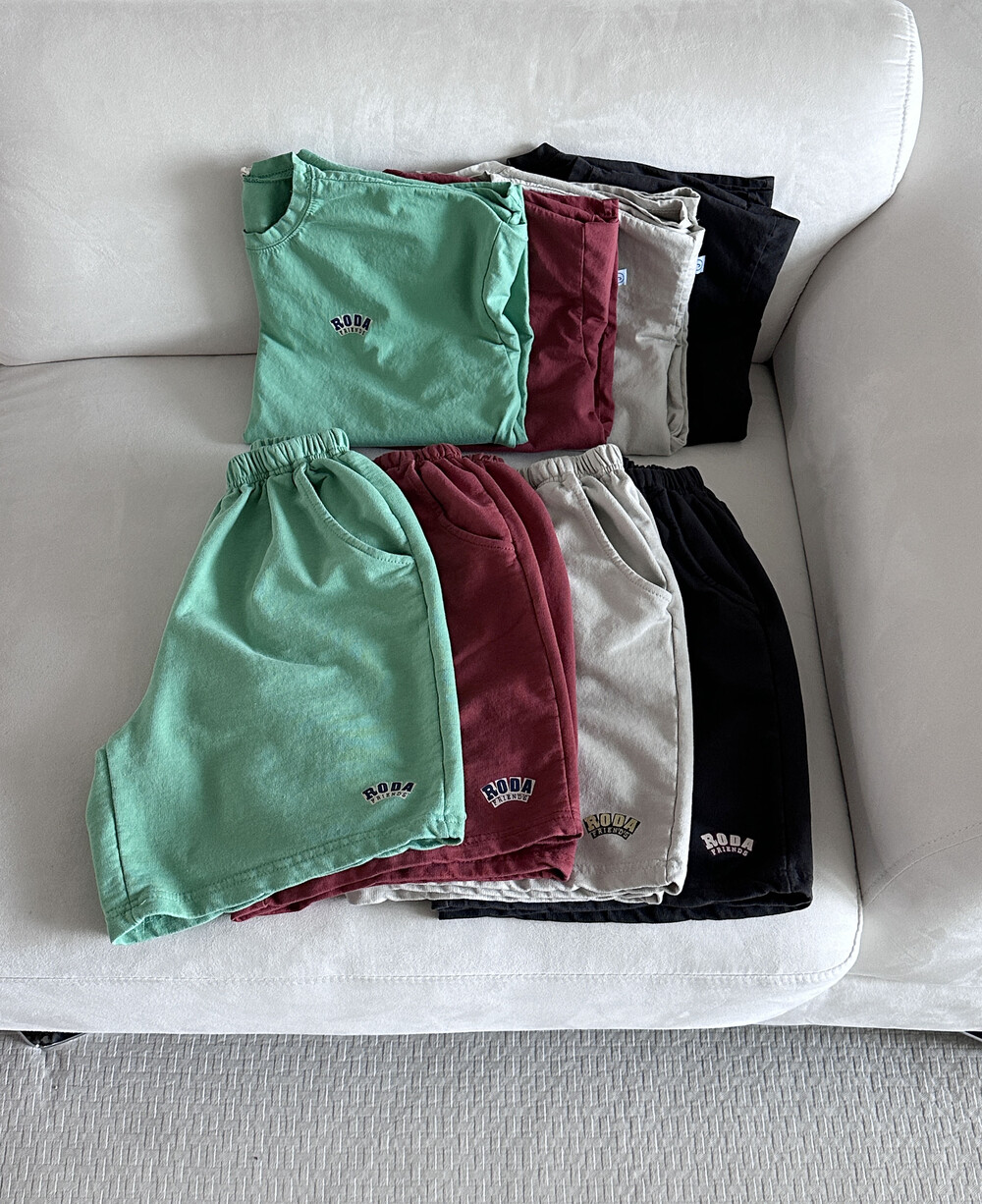 얇은 싱글 코튼 소재로 제작된 반팔상하세트에요:)
