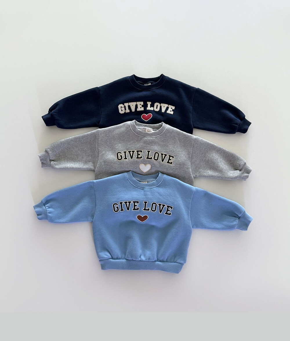 클래식한 라운드넥 디자인에전면의 ‘GIVE LOVE’ 플록 자수 포인트로