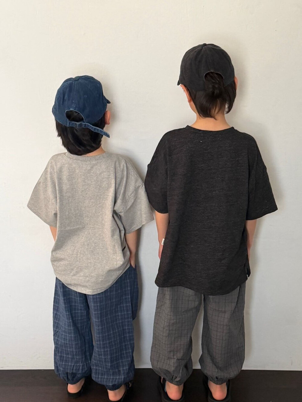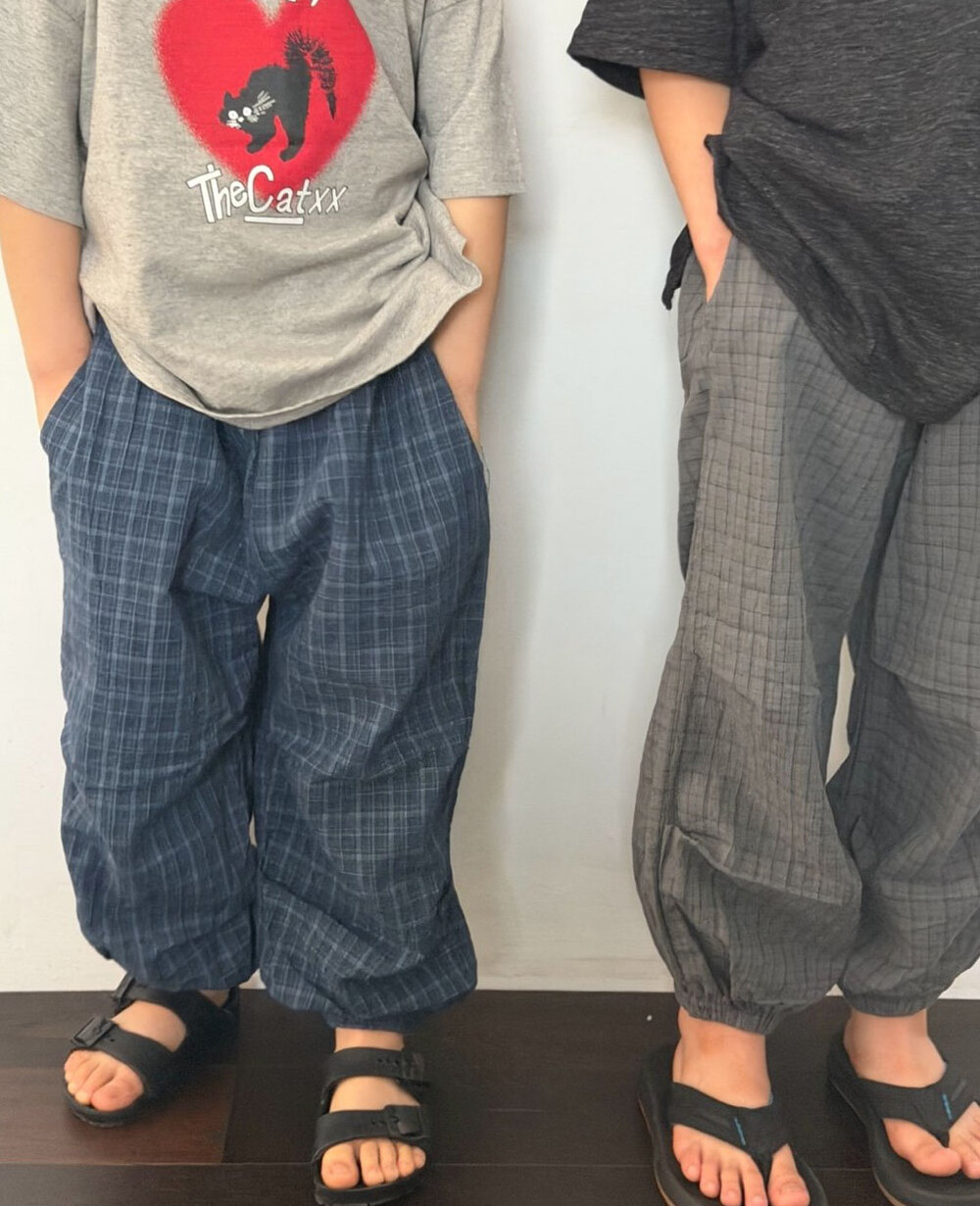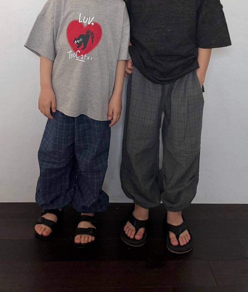 얇은체크 원단의 조거팬츠에요:)