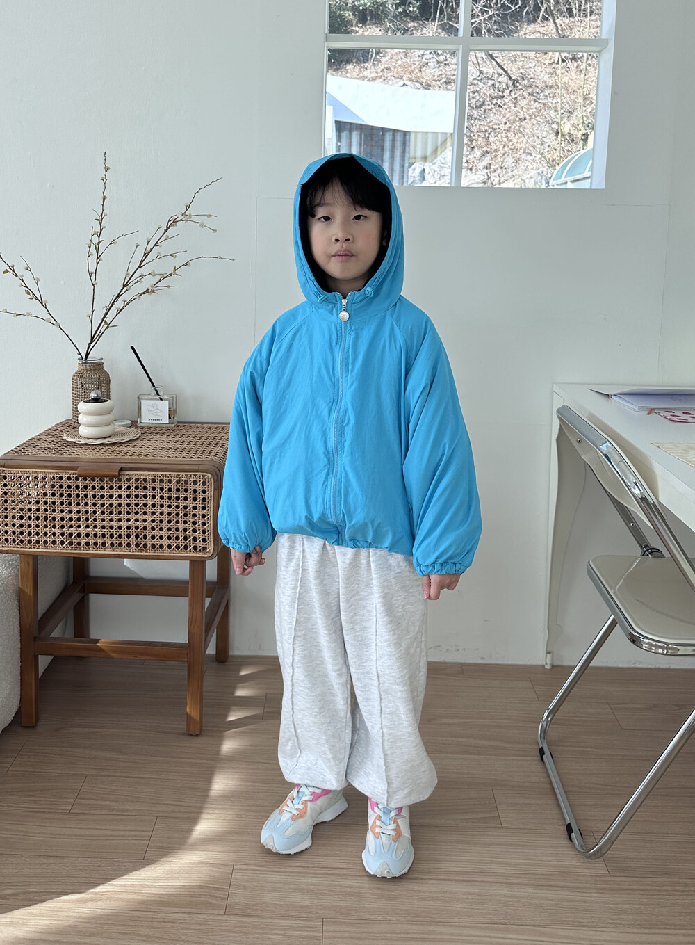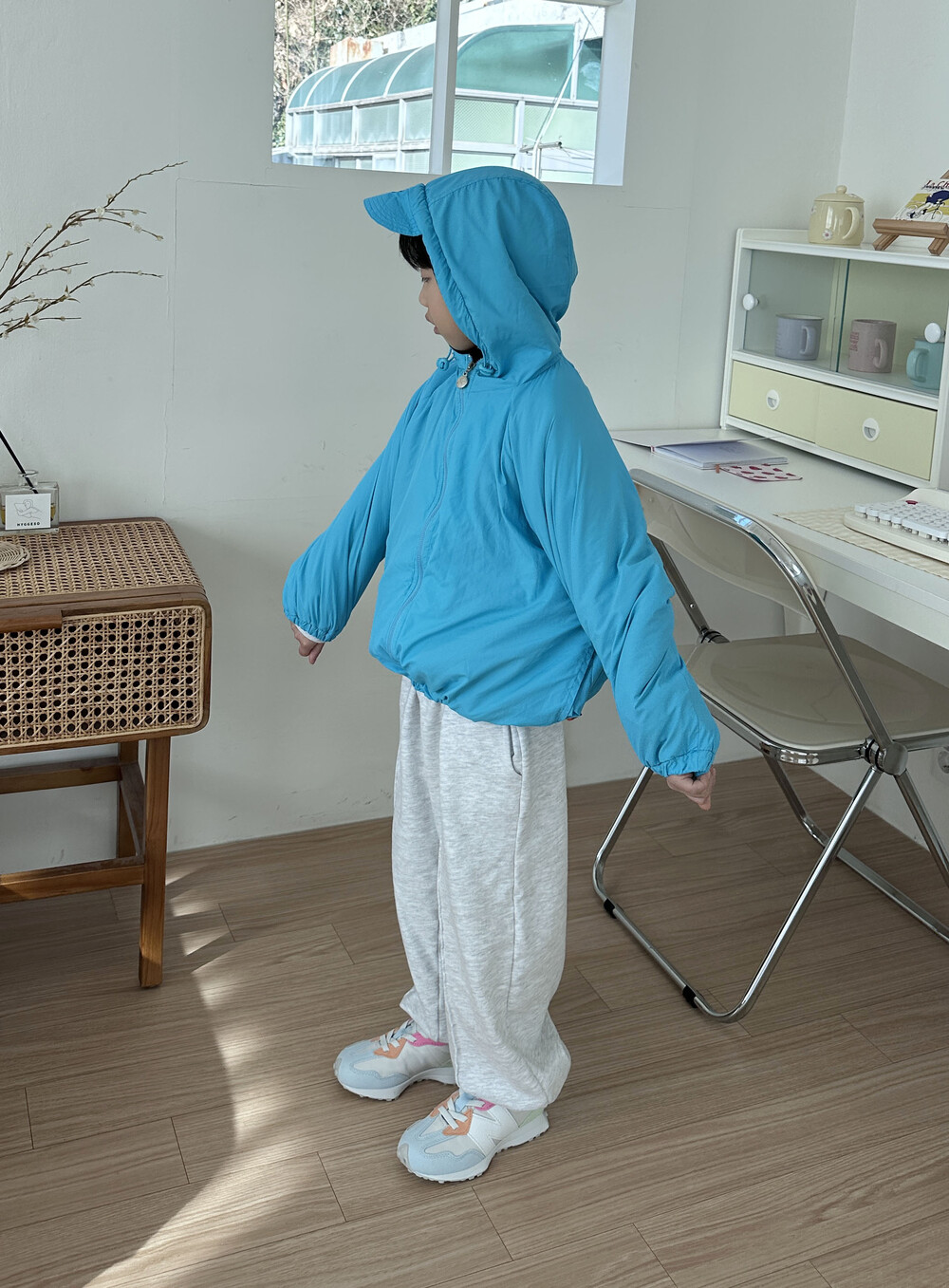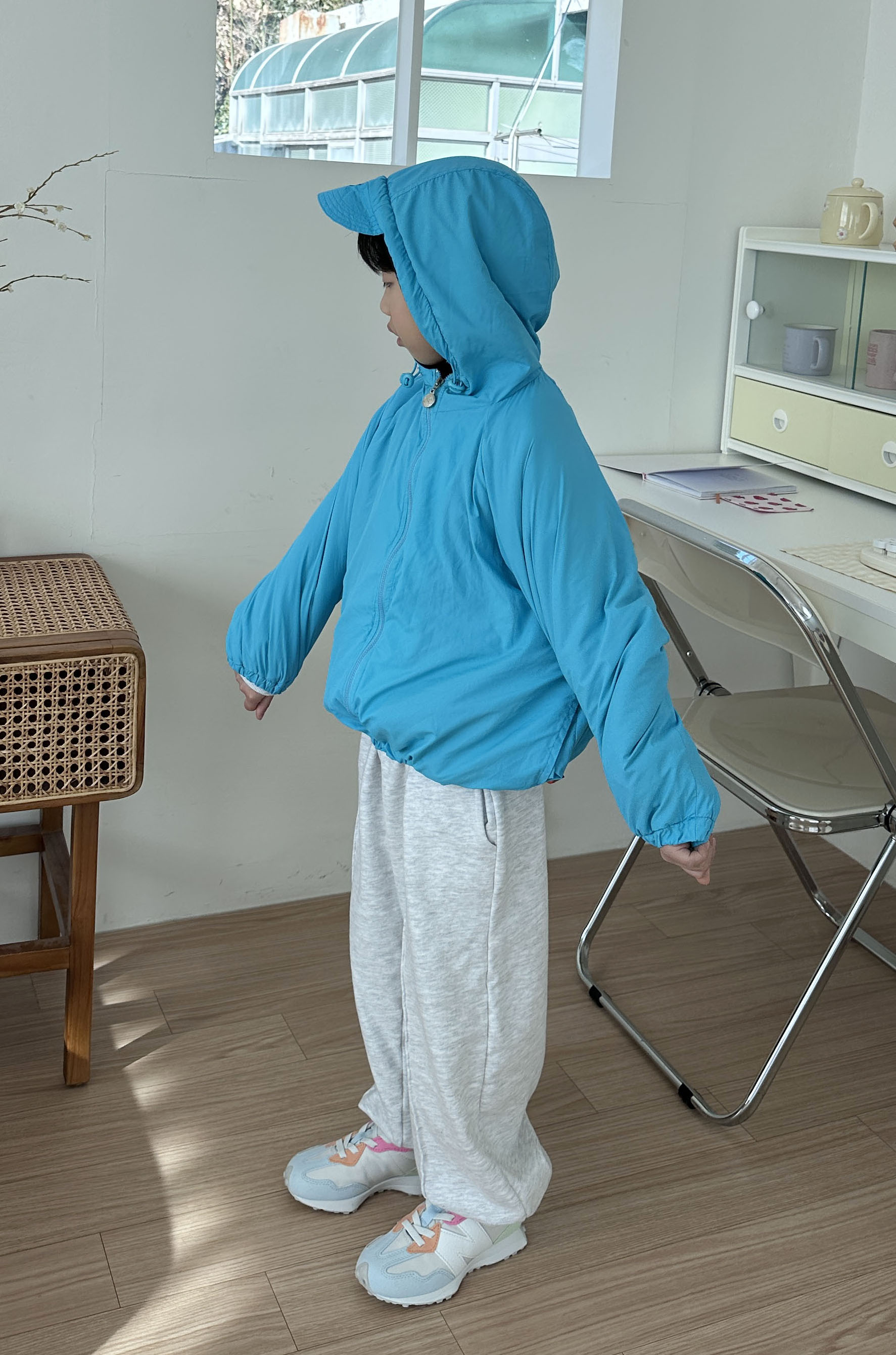 후드 챙이 달려있는 점퍼에요!