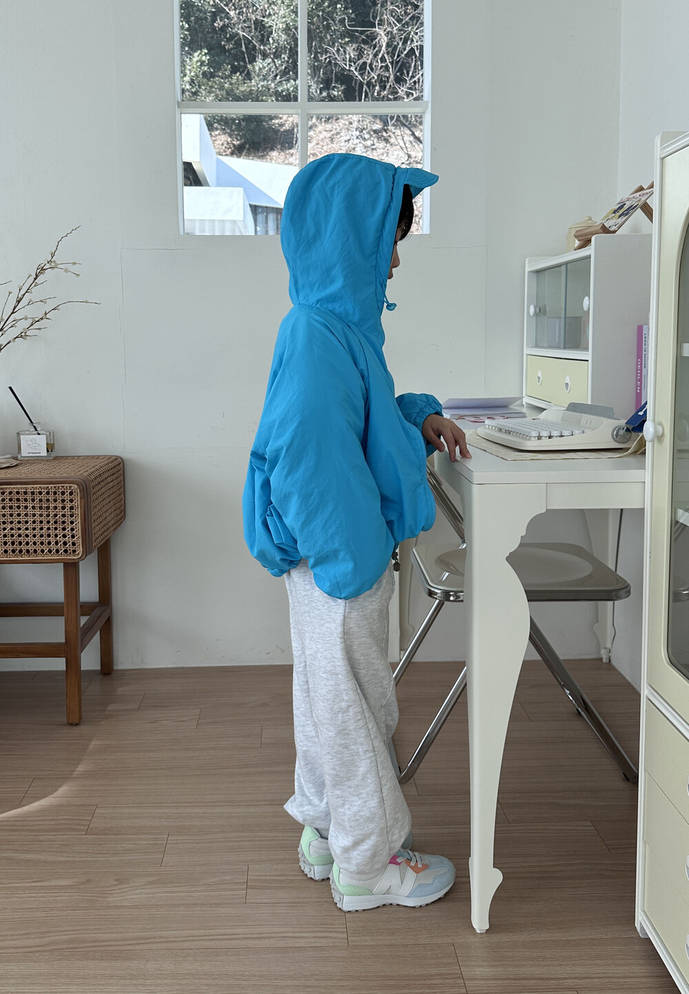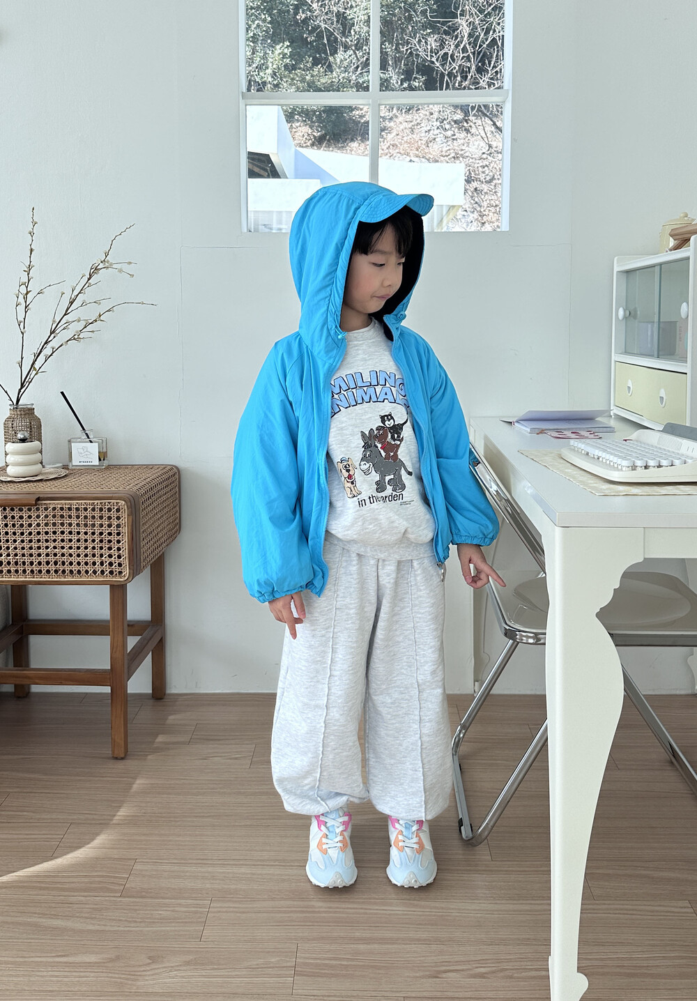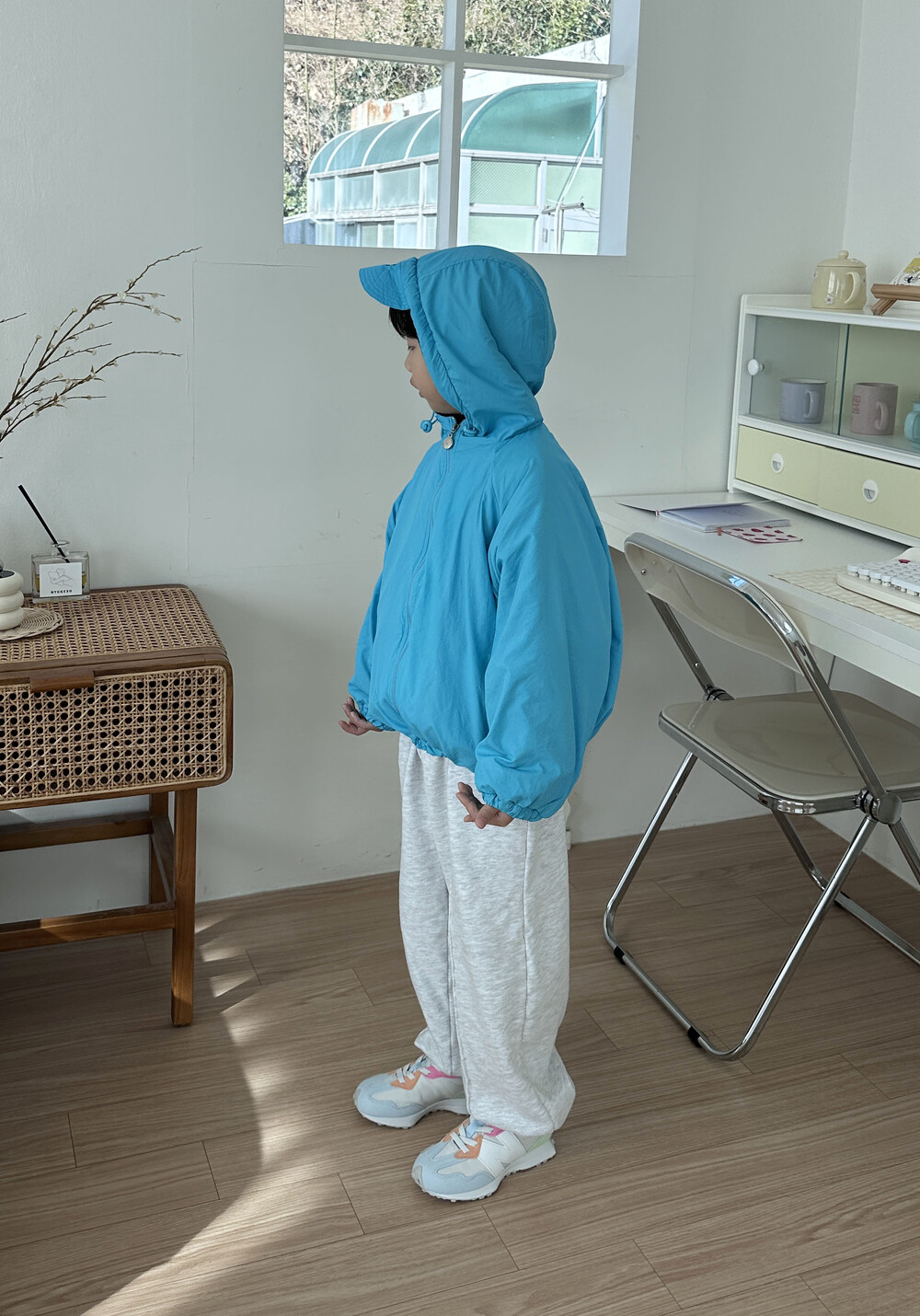 후드 챙이 달려있는 점퍼에요!