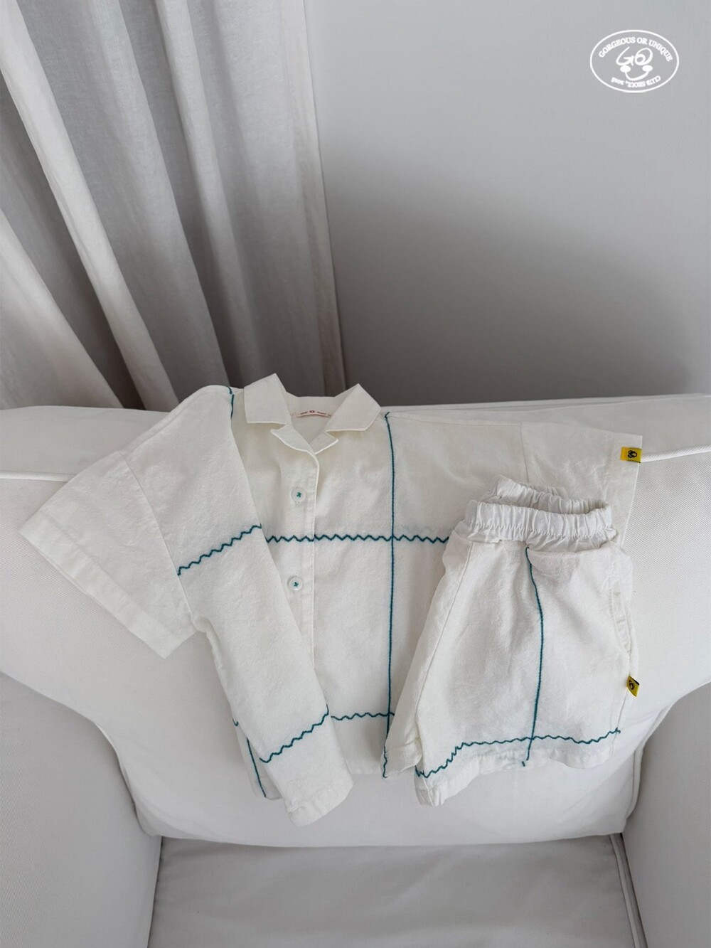 핸드메이드 느낌의 라인 자수가 포인트로