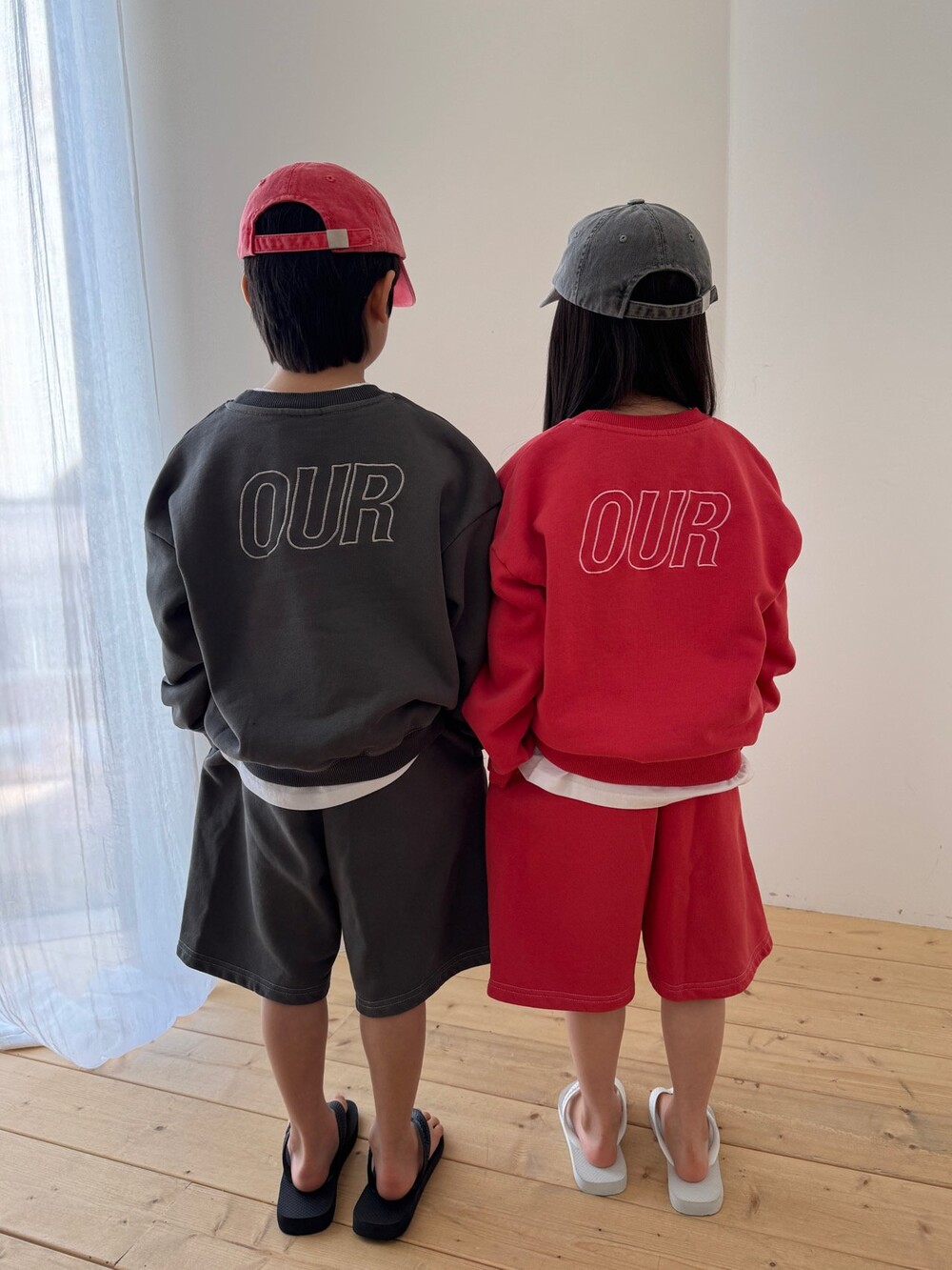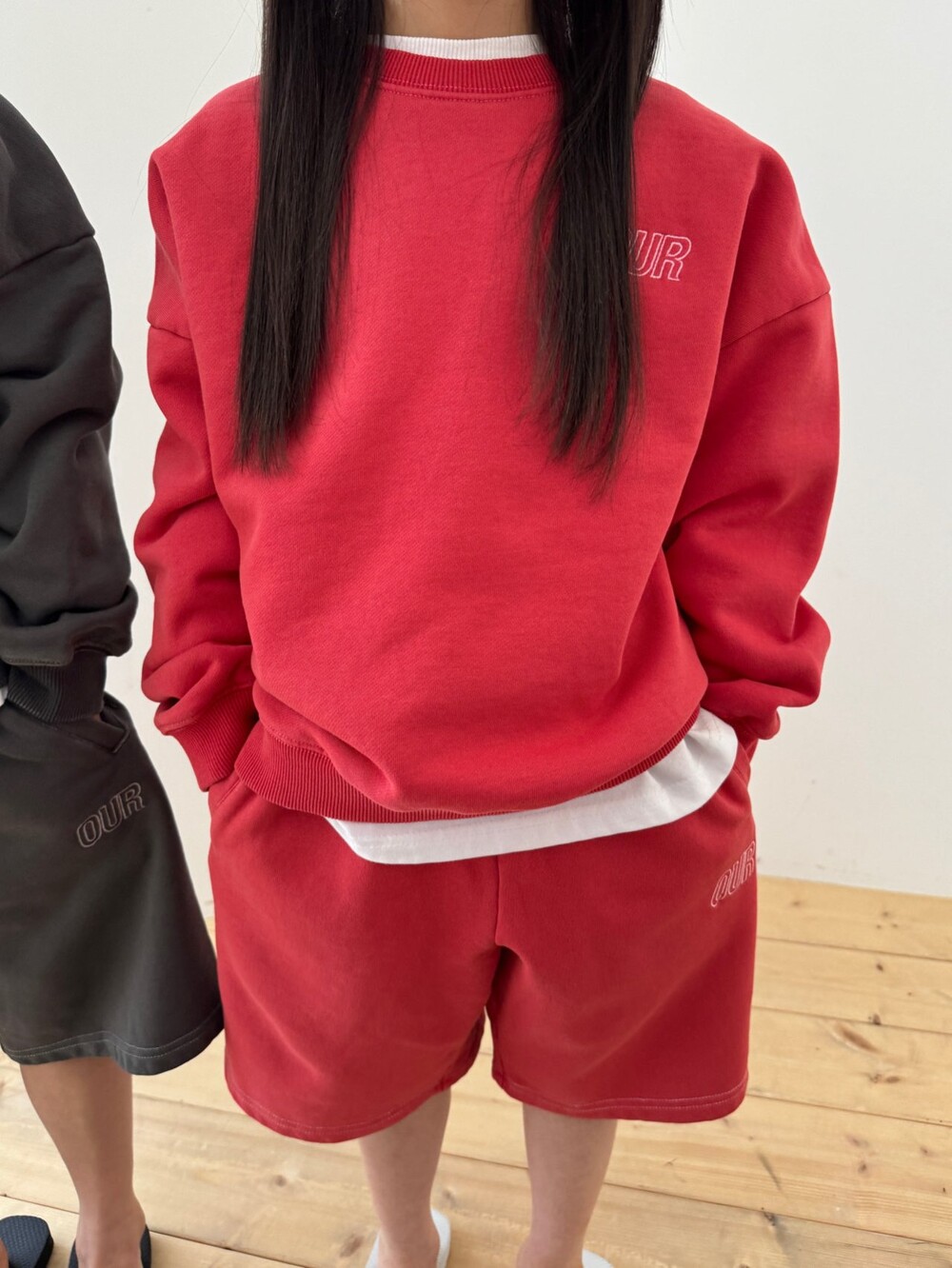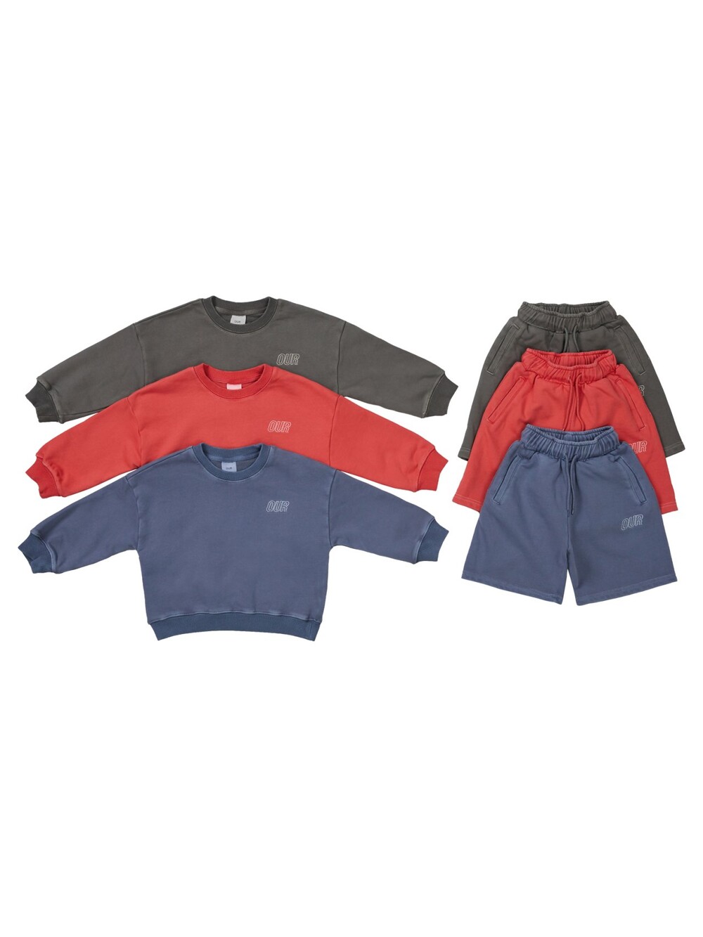 맨투맨+반바지 구성으로 세트로 입혀도 좋고