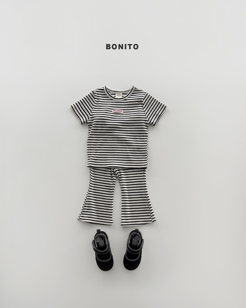 하의는 똑 떨어지는 기장에 부츠컷 라인으로 다리 라인을 예쁘게 살려줘요.