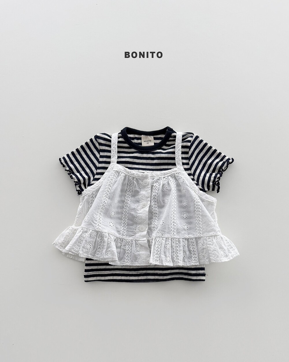 티셔츠와 레이어드해도 예쁘고세트처럼 다양한 코디가 가능한 아이템입니다.