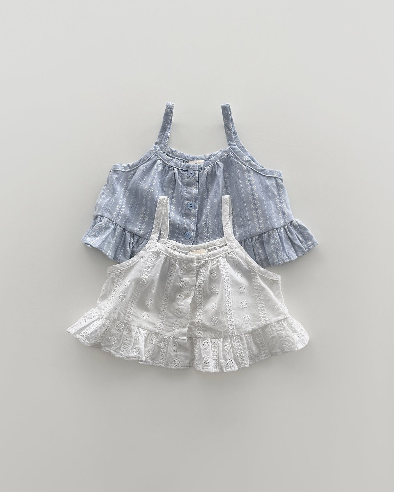 자연스럽게 퍼지는 프릴 디테일로사랑스럽고 여리한 무드를 살려주며,
